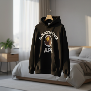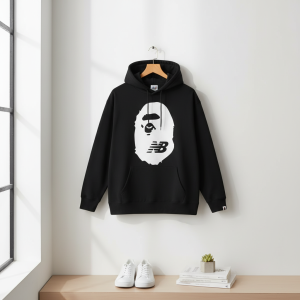 A Bathing Ape Logo Print Gray Pullover Hoodie