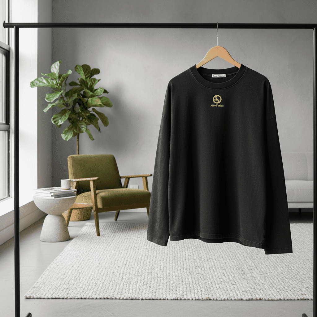 Acne Studios Black Long Sleeve T-Shirt, made from premium breathable cotton, features a classic crew neck, logo graphic on chest, Nordic minimalist design, unisex fit, perfect for casual daily wear.