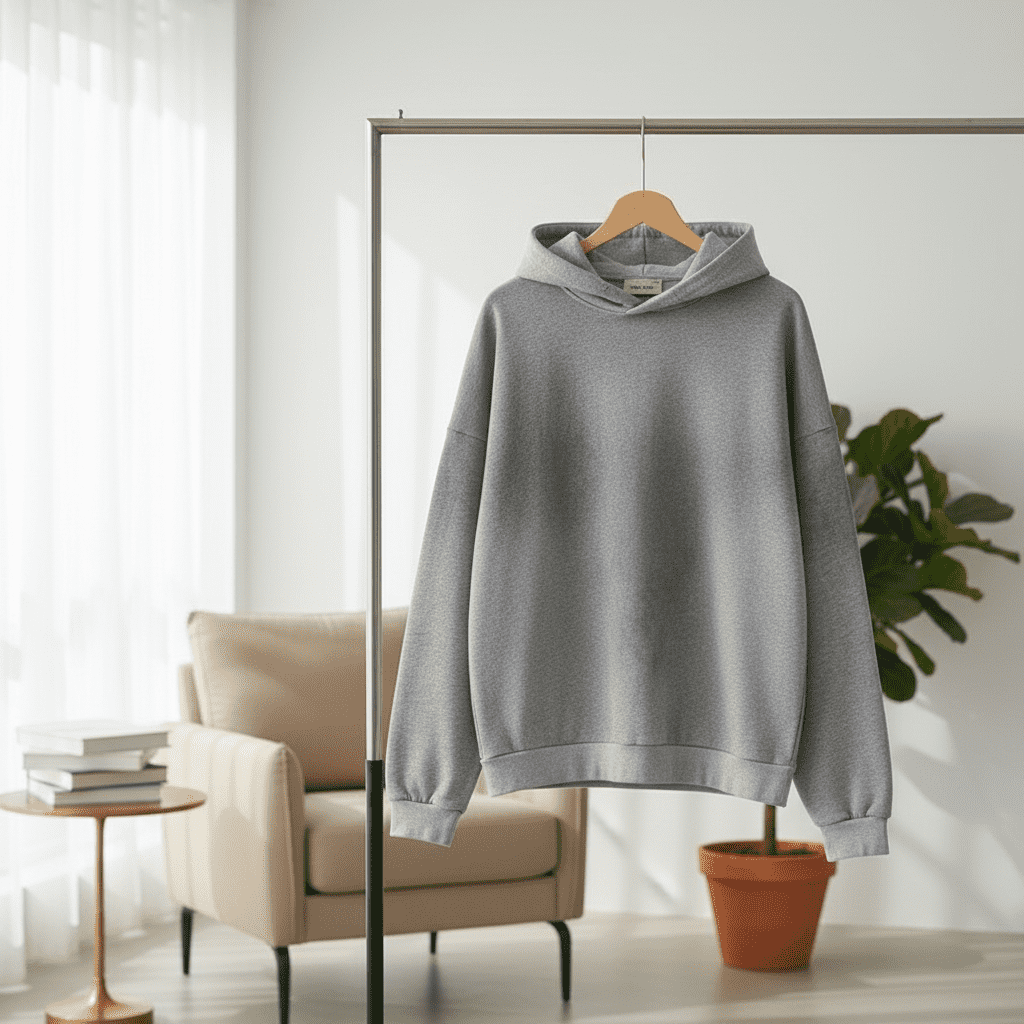 Acne Studios Grey Hoodie features soft breathable cotton, “STOCKHOLM 1996” graphic on back, minimalist Nordic style, unisex loose fit, versatile hood for everyday casual comfort and fashion.