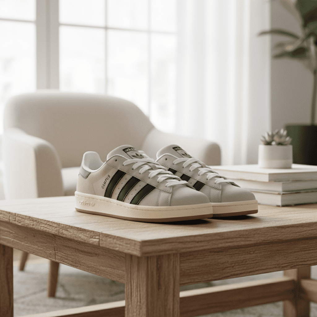Adidas Campus Sneakers in light gray feature premium material, iconic three stripes, and a retro design. Unisex casual shoes offering timeless style and all-day comfort for everyday wear.