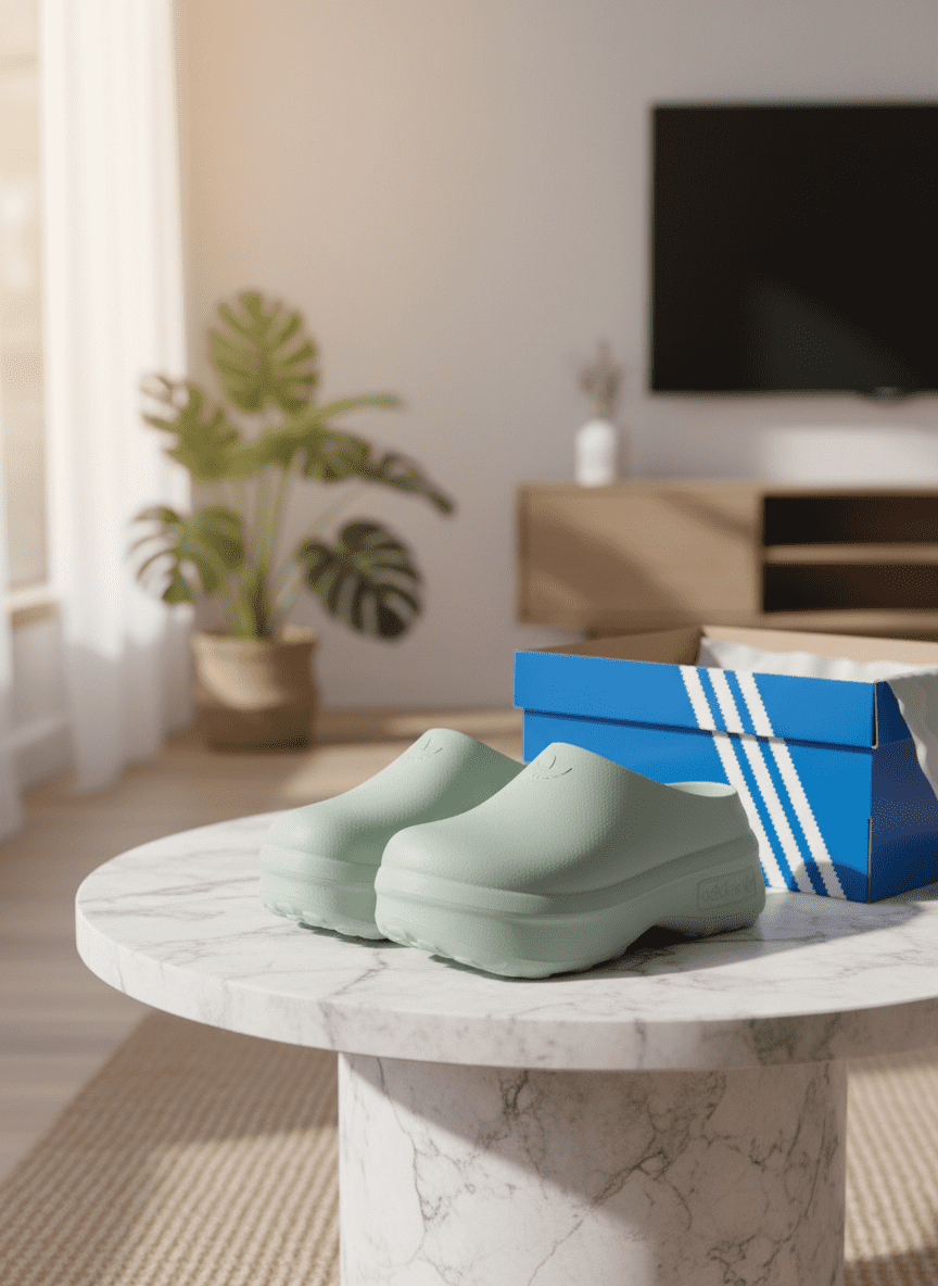Adidas Light Green Platform Slides made with lightweight EVA material, slip-on backless design for easy wear, anti-slip sole for stability, unisex casual style perfect for everyday comfort and fashion.