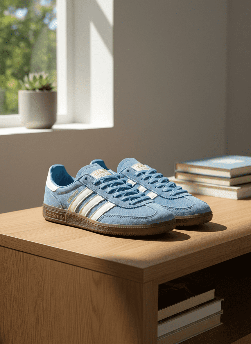 Adidas Originals light blue suede casual sneakers feature soft comfort, classic three stripes, vintage style, breathable durability, perfect for everyday wear, unisex design, stylish and practical.