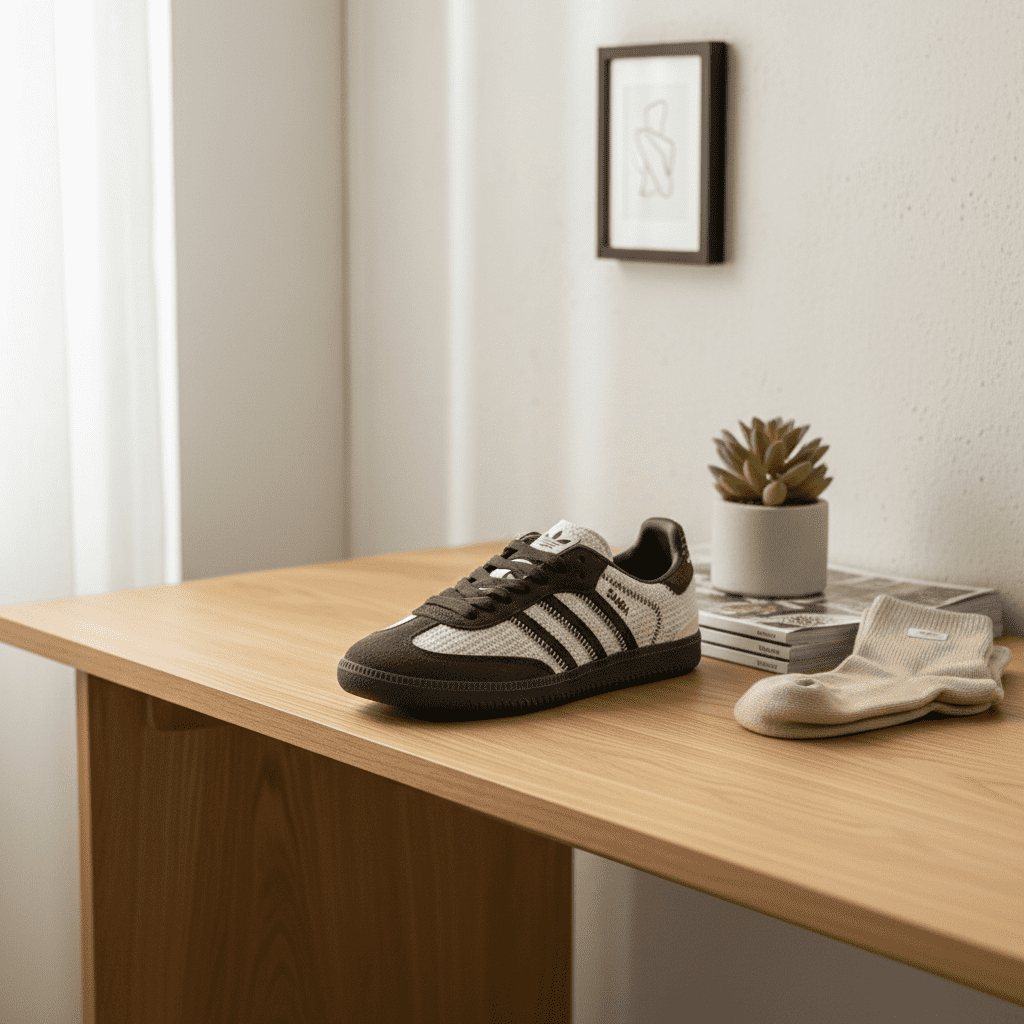 Adidas Samba Retro Sneakers feature a classic brown-white design, durable premium materials, iconic 3-Stripes style, unisex fit, perfect for everyday wear with a timeless vintage vibe.