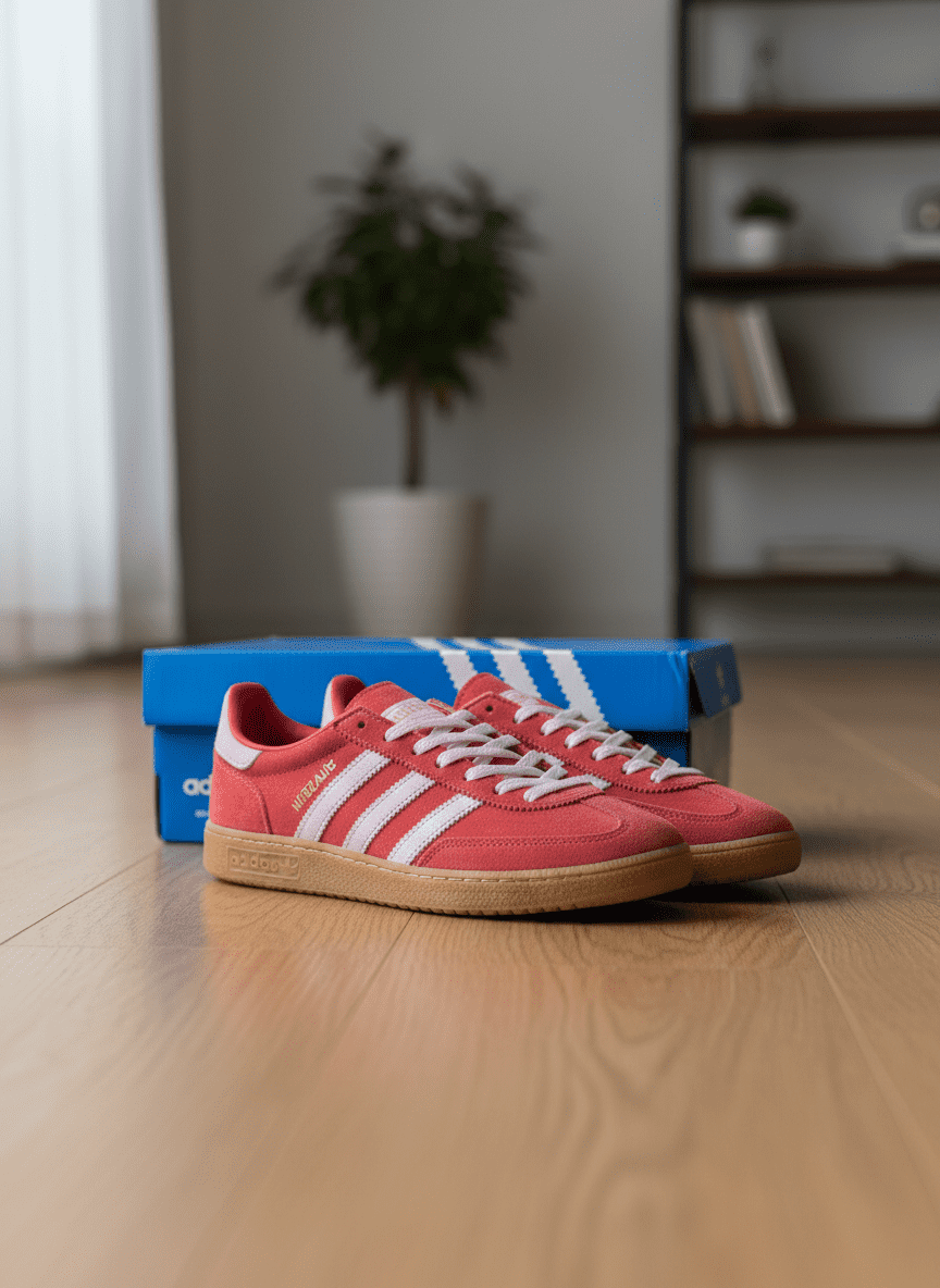 Adidas Stadium Red Suede Sneakers feature premium soft suede, iconic white triple stripes, gum sole, and white laces. Unisex vintage casual shoes for everyday style and comfort.