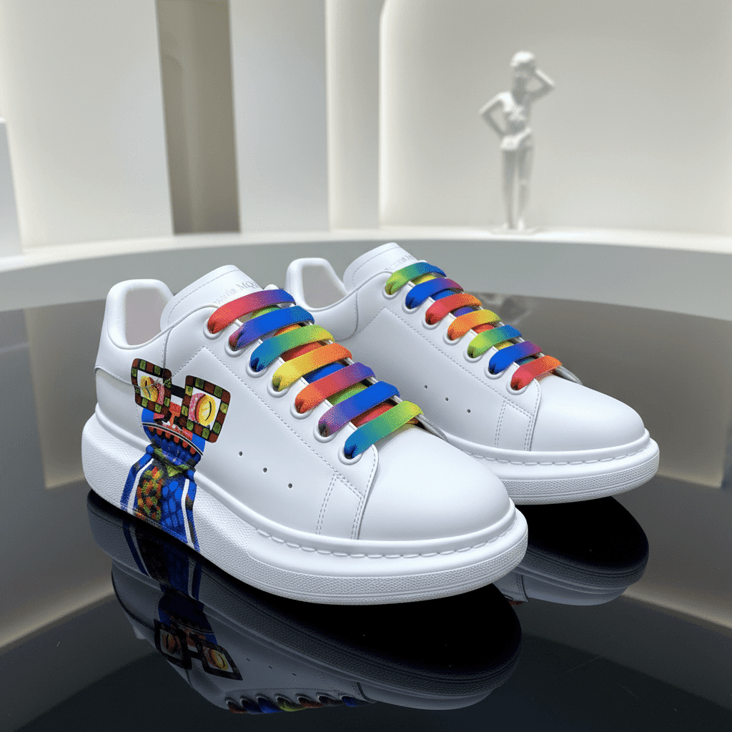 Home / Shoes/ Alexander McQueen High-End Sneaker Italian Leather Rainbow Laces Unisex Ivory White