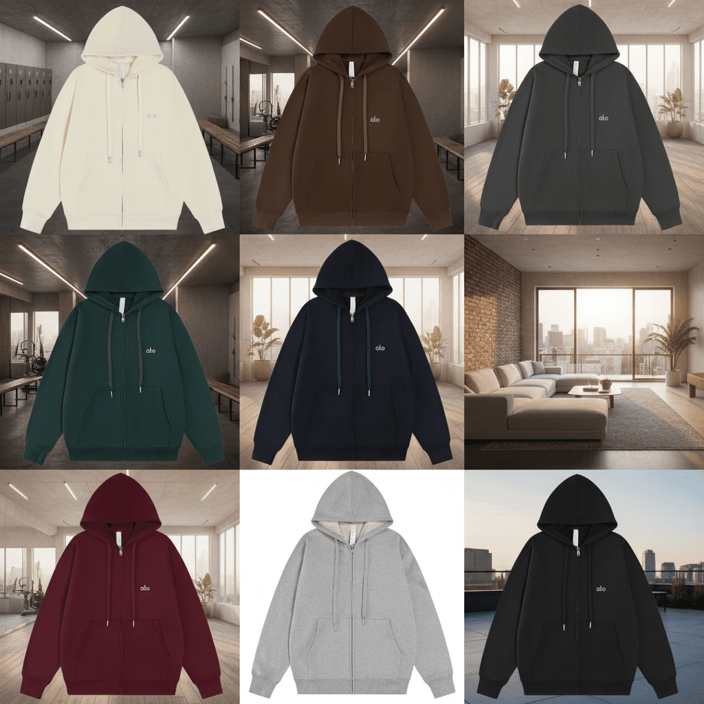 Alo Couples Zip-Up Hoodie Terry Fabric Autumn Winter Sapphire