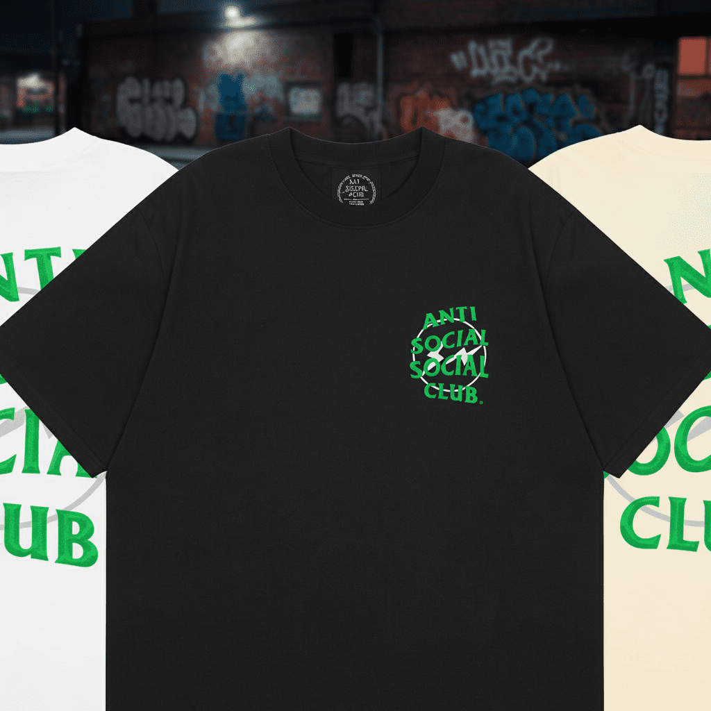 Stand out with this trendy multicolor T-shirt featuring bold "ANTI SOCIAL CLUB" print in green. Available in white, black, and beige.