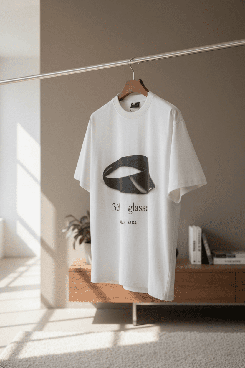 Balenciaga 360 Glasses White T-Shirt, made from soft breathable cotton, features black glasses graphic and logo, unisex streetwear style, perfect for casual and trendy everyday looks.