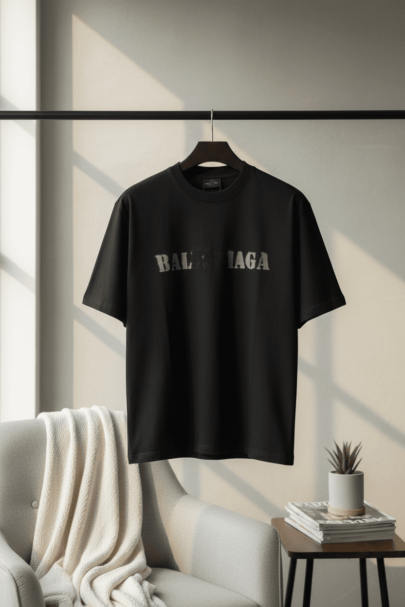 Home / T-Shirts/ Balenciaga Black Cotton Logo Print T-Shirt