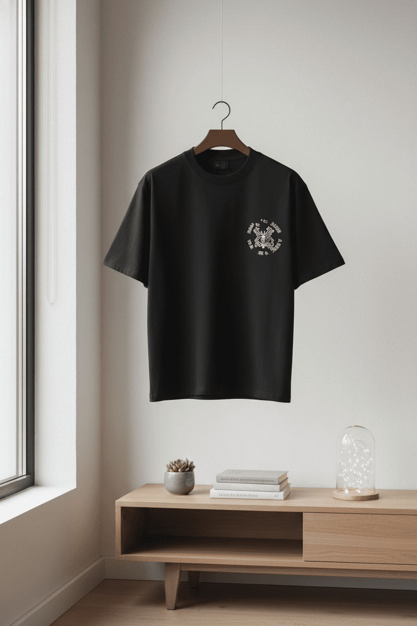 Balenciaga black cotton T-shirt with white totem print on chest, soft and breathable, unisex streetwear style, perfect for daily casual outfits.