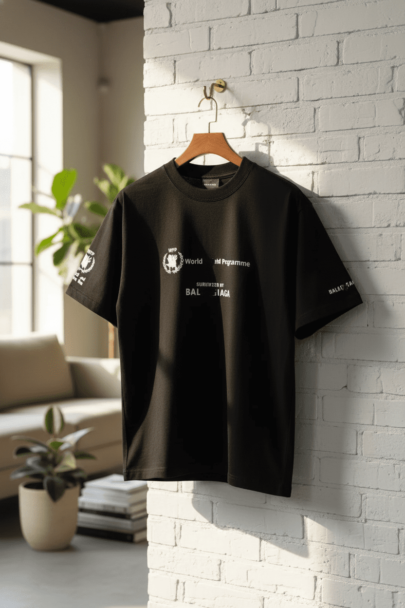 Balenciaga black cotton T-shirt features a soft, skin-friendly fabric with the iconic logo on the front. Unisex streetwear style, simple yet fashionable, ideal for daily casual looks with premium luxury appeal.