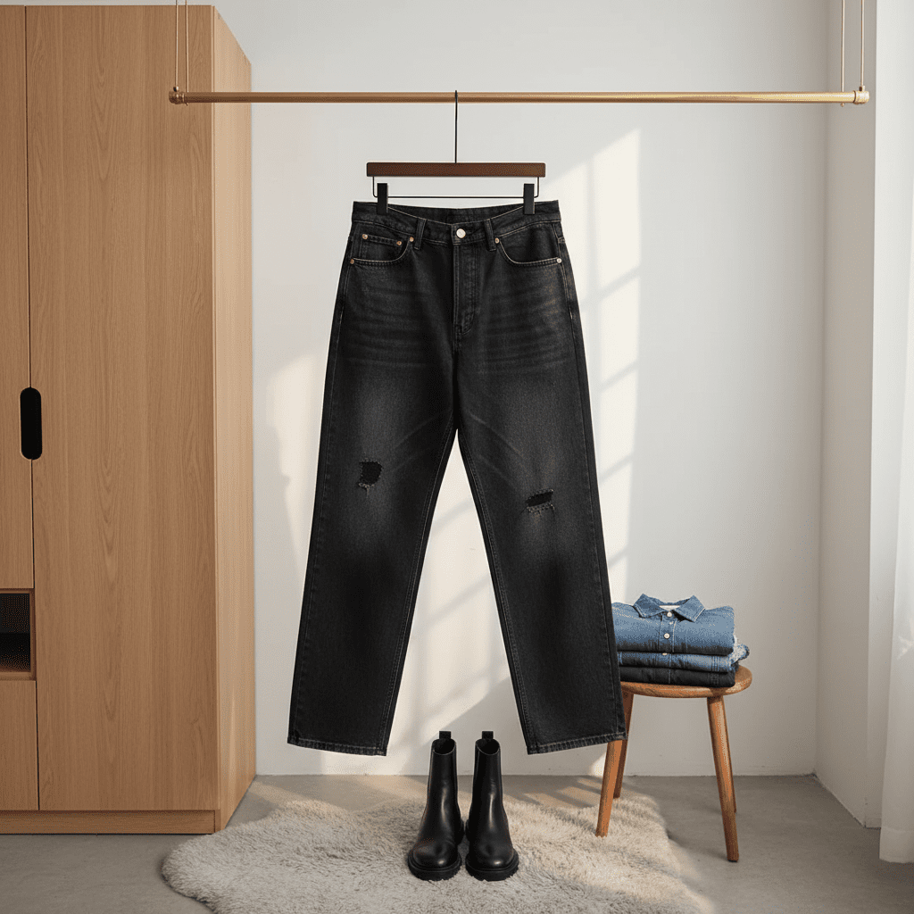 Balenciaga Black Loose Ripped Jeans crafted from premium denim, featuring large pockets, unisex design, and streetwear style for a comfortable yet edgy everyday fashion look.