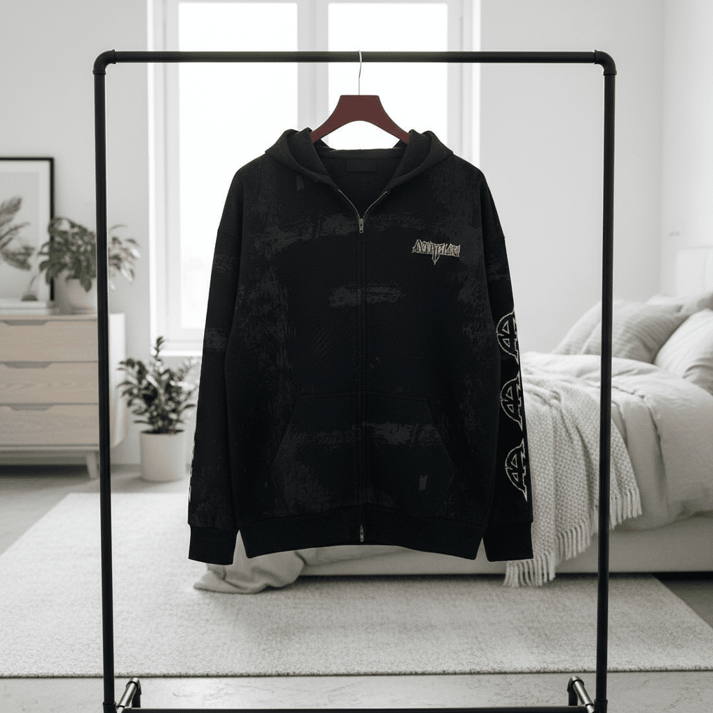 Home / Hoodies/ Balenciaga Black Zip Up Graphic Hoodie