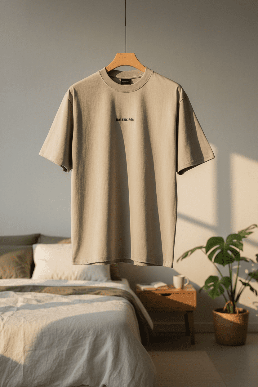 Balenciaga Classic Logo Beige Cotton T-Shirt