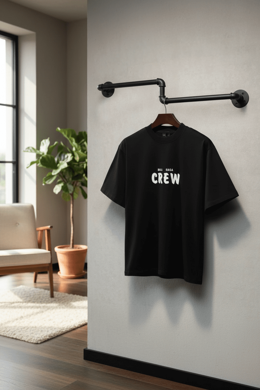 Balenciaga BALL GAGA CREW Black T-Shirt, soft breathable cotton, white front graphic, classic round neck, unisex streetwear style, perfect for daily casual wear with modern fashion edge.
