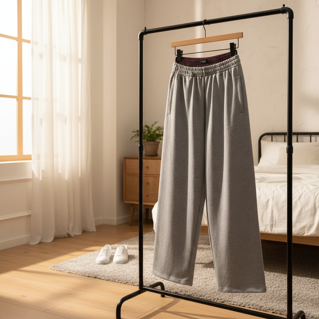 Balenciaga Grey Wide-Leg Sweatpants crafted from premium cotton, featuring elastic waistband with plaid lining, side pockets, stylish unisex design for ultimate comfort and streetwear appeal.