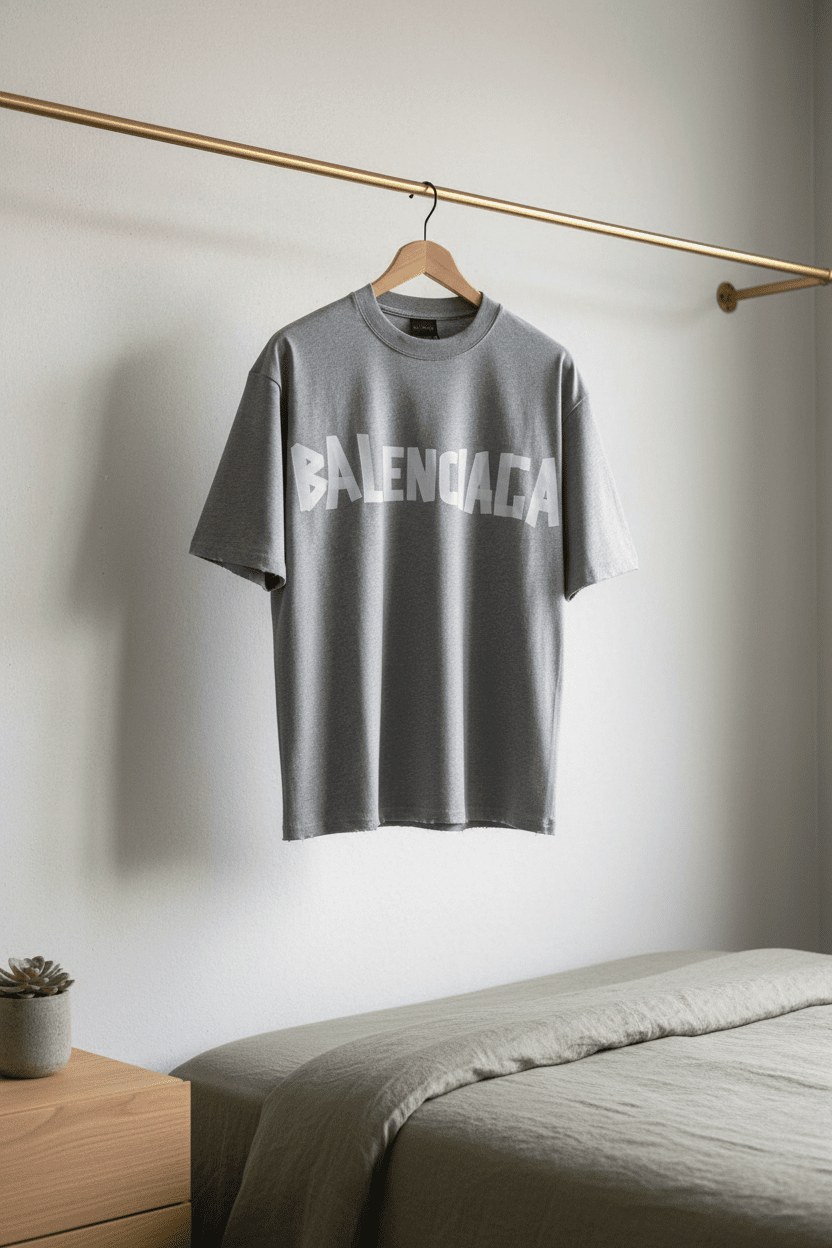 Balenciaga Grey Cotton T-Shirt featuring soft breathable fabric, oversized fit, bold white logo print on chest, unisex streetwear style, comfortable and versatile for daily casual fashion.