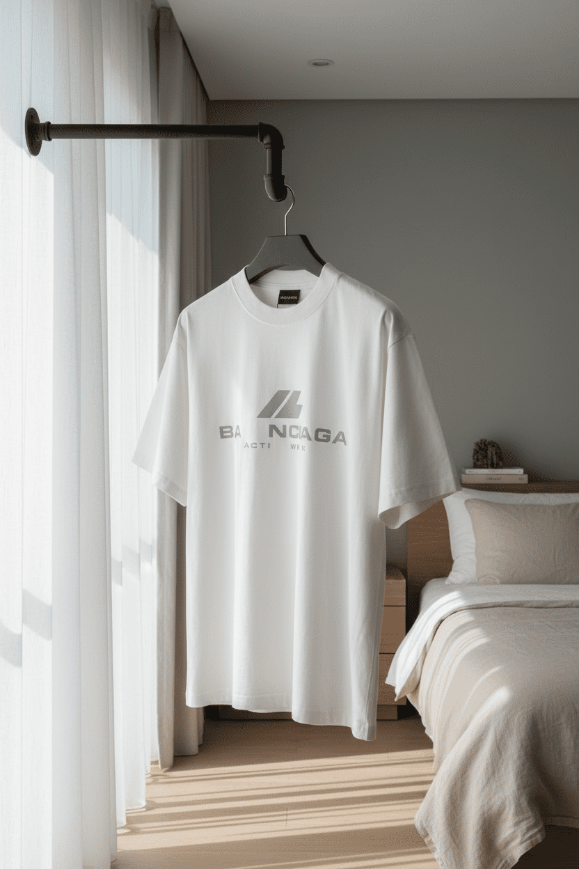 Balenciaga Acti Wear Pink Cotton T-Shirt, soft and breathable fabric, classic crew neck, signature logo print, unisex design for casual streetwear style and everyday comfort.