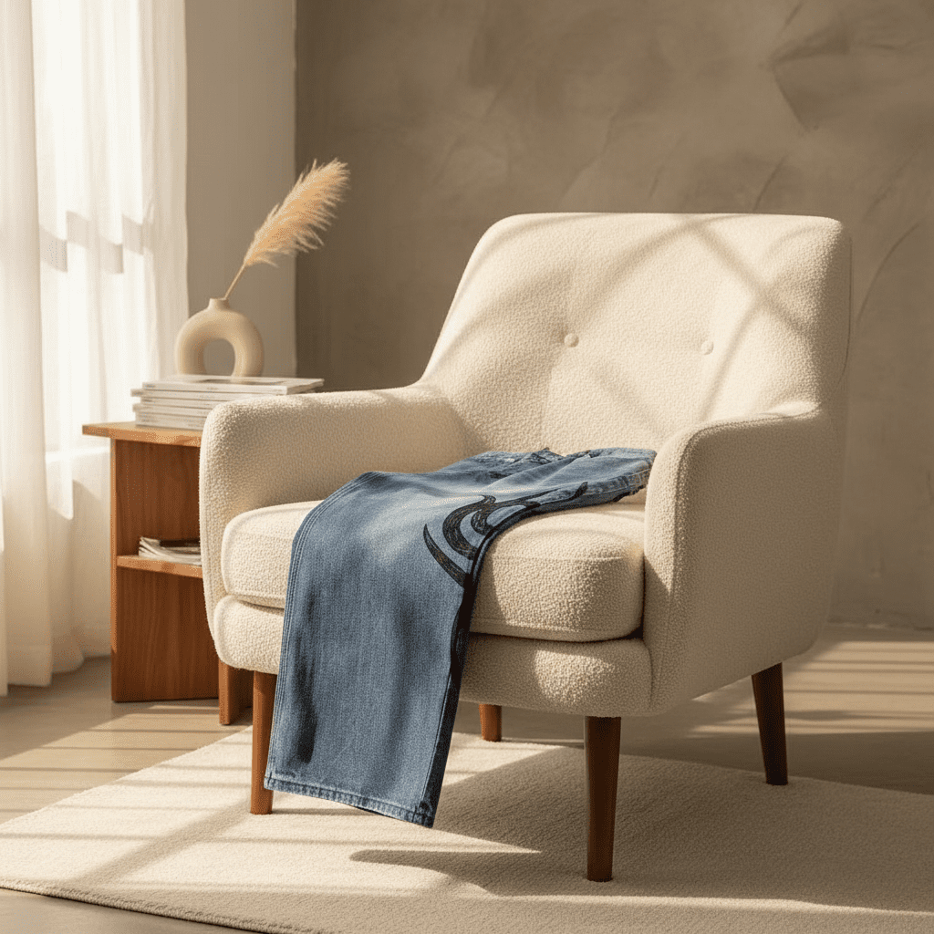 Balenciaga Blue Washed Wide-Leg Jeans, premium denim with black flame side design, streetwear style, unisex fit, comfortable daily wear, showcasing bold avant-garde fashion attitude.
