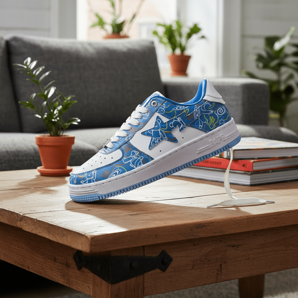 BAPE STA Blue Graphic Low Top Sneakers Men