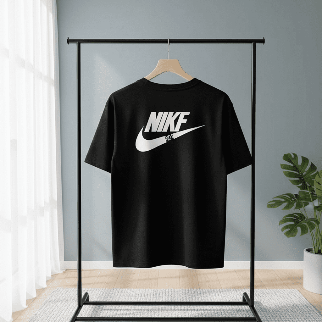 Nike Black Trendy Cotton T-Shirt, breathable and soft fabric, white logo graphic on back, classic crew neck, unisex street style, perfect for daily wear, comfortable and stylish.