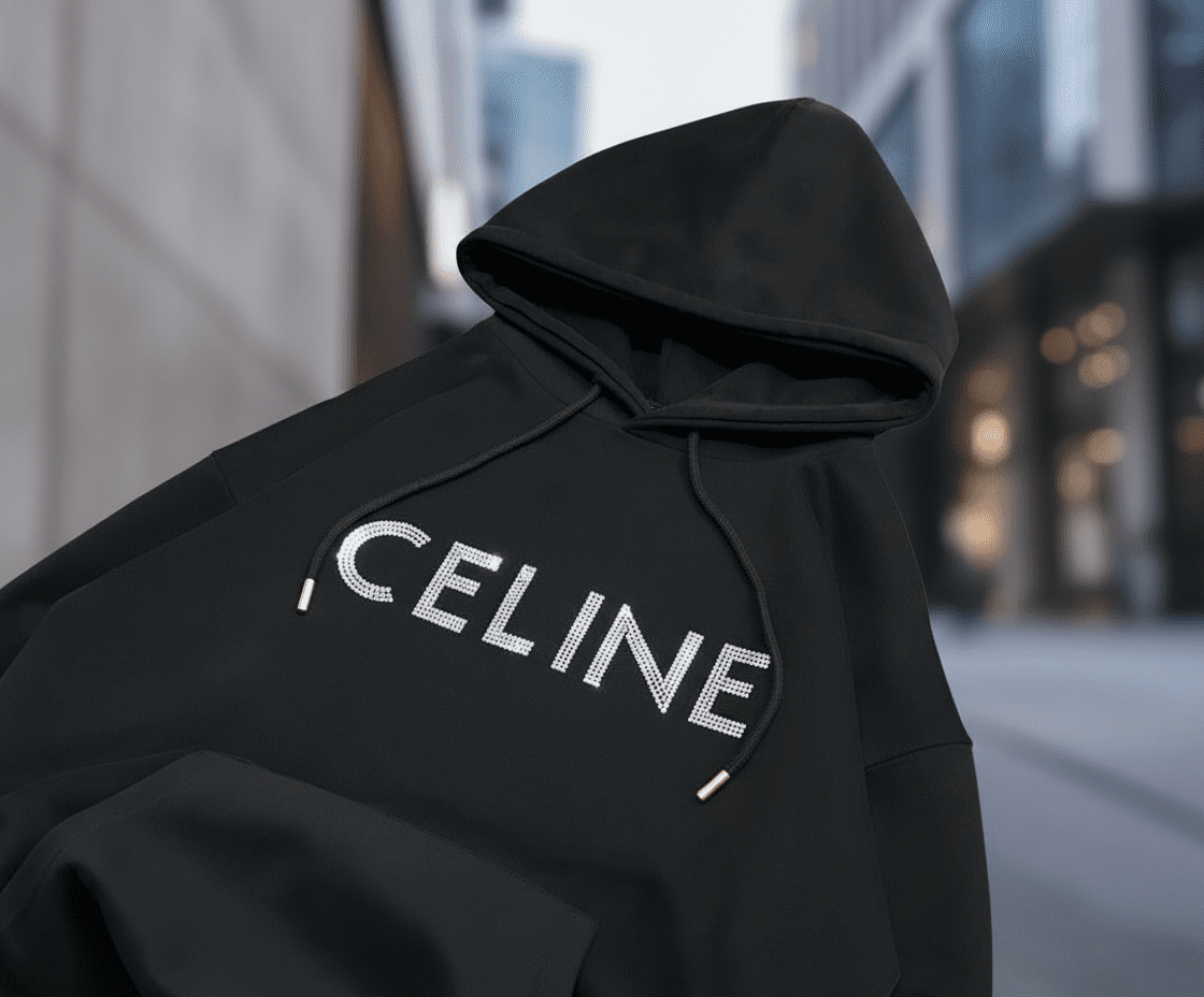 Home / Hoodies/ Celine CEL Letter Rhinestone Hoodie Unisex Soft Durable Onyx Black