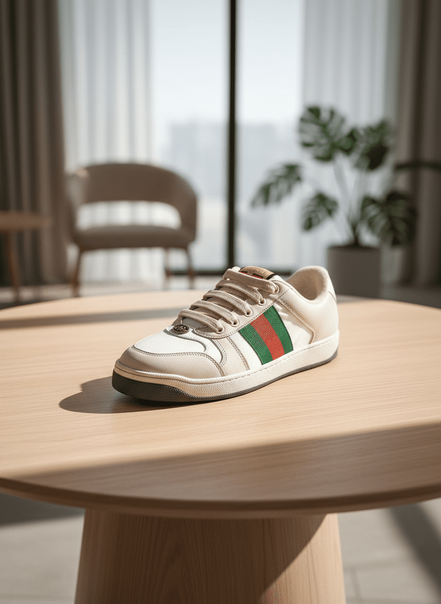 Gucci Men’s Red Black Leather Casual Sneakers Shoes