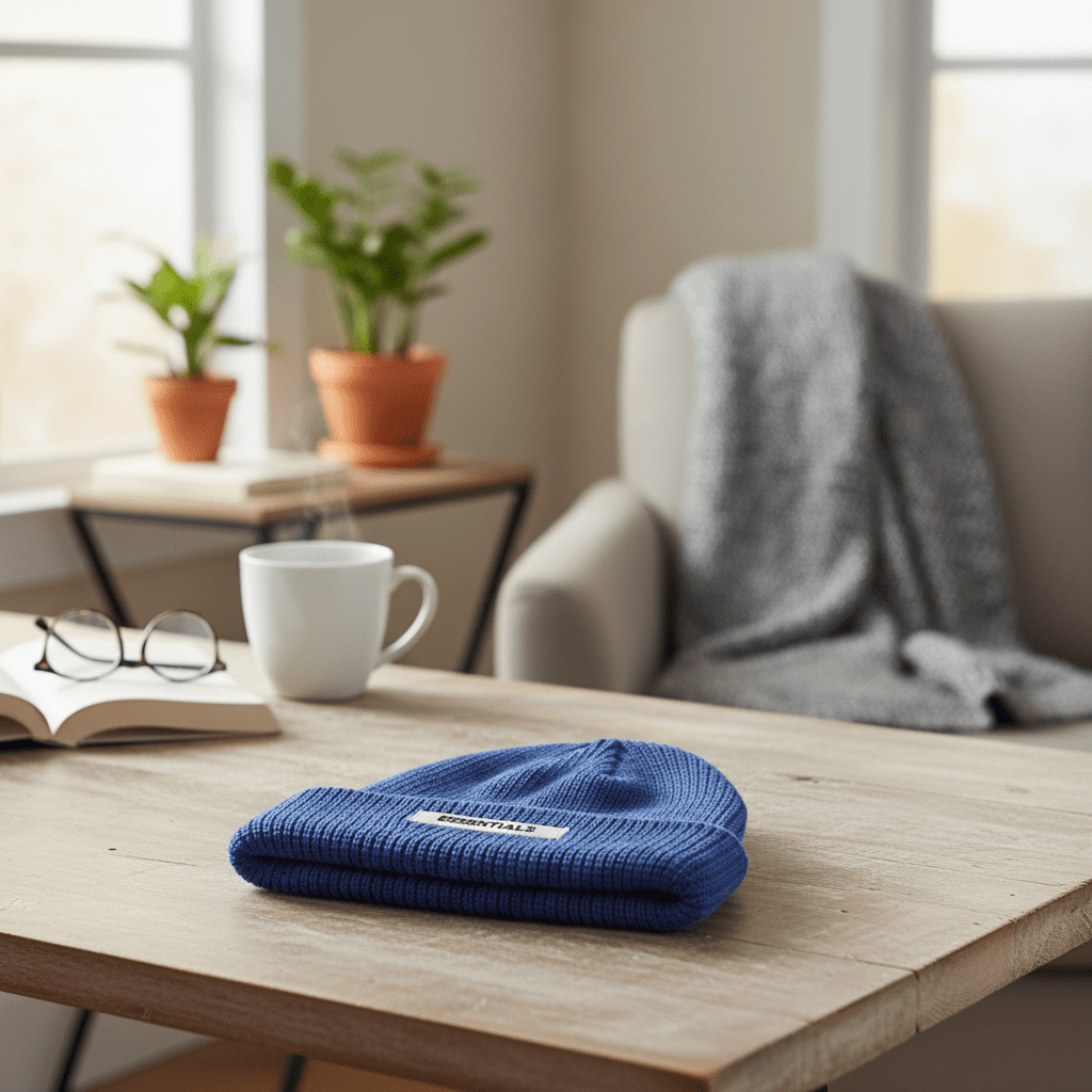 Essentials Blue Knit Beanie Winter Hat