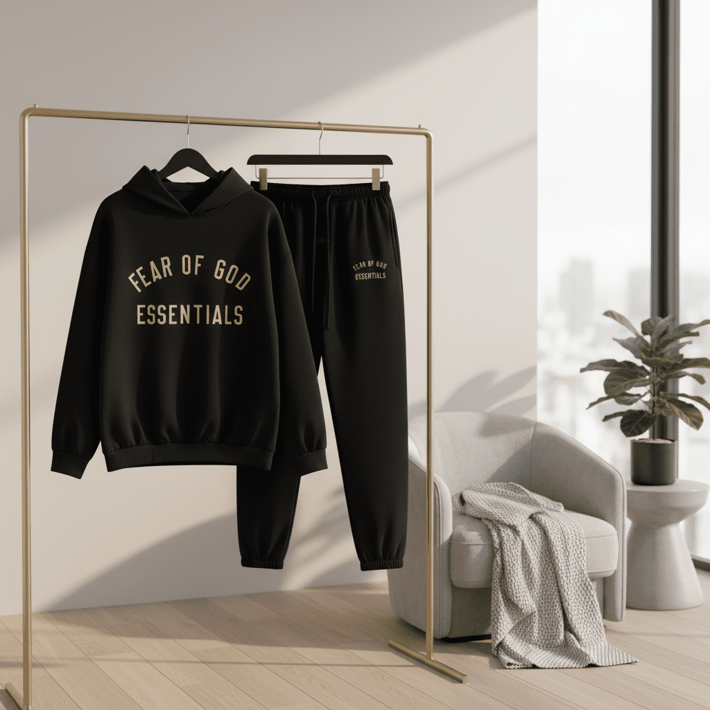 Essentials Fear of God Black Hoodie Sweatpants Set