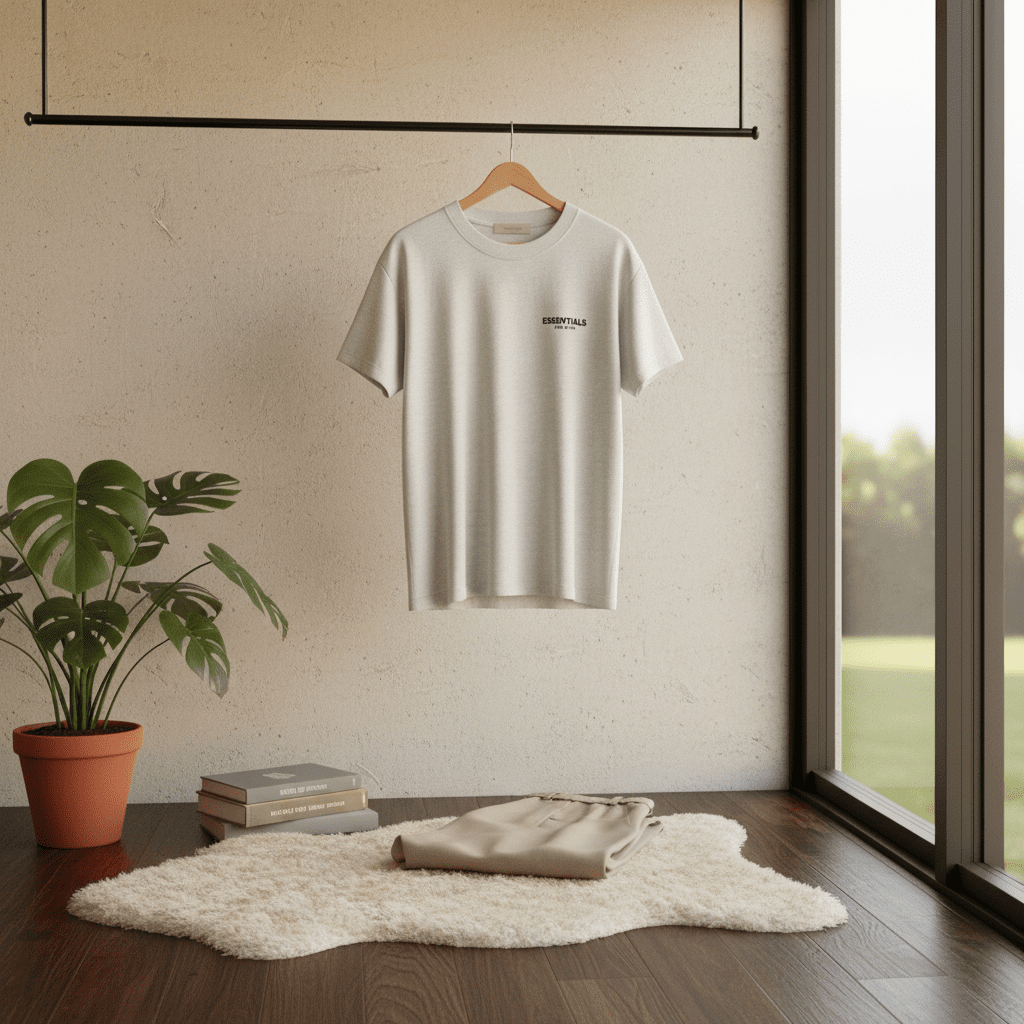 Essentials Oversized Beige Cotton T-Shirt for Men