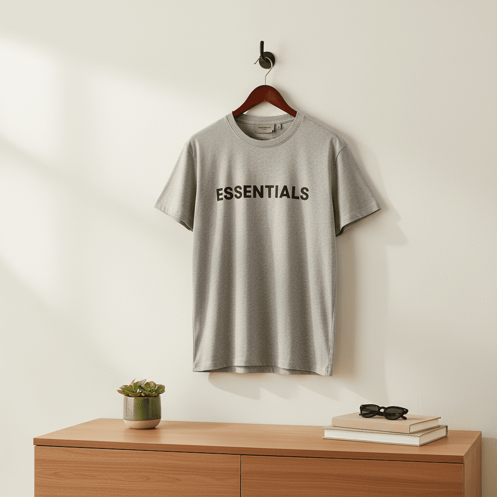 ESSENTIALS Grey T-Shirt, made from premium cotton for a soft and breathable feel, features classic ESSENTIALS lettering, unisex design, casual streetwear style, perfect for daily trendy outfits.
