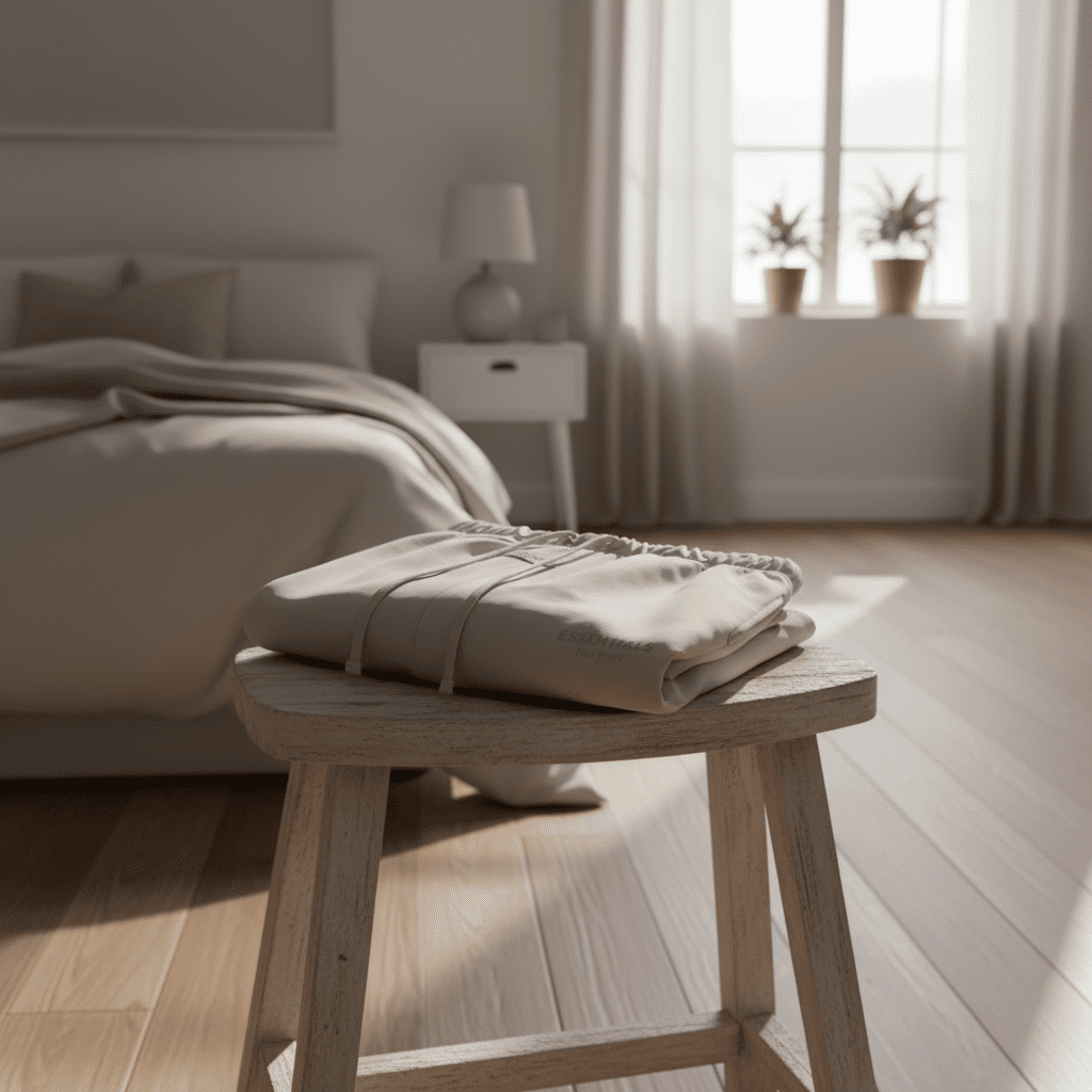Essentials Light Gray Cotton Shorts, soft and comfy fabric, elastic drawstring waist, side pockets, subtle logo print, minimalist streetwear style for men and women, perfect for everyday casual wear.