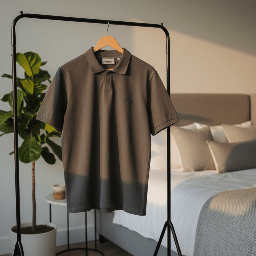 Essentials Dark Gray Polo Shirt – crafted from breathable cotton for all-day comfort. Features a classic polo collar, subtle chest logo, and minimalist unisex design for versatile everyday wear.