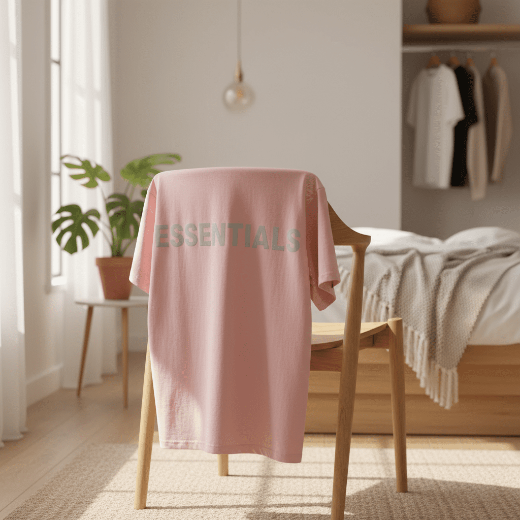 Essentials Pink T-Shirt, made of premium cotton for softness and breathability, features bold back logo print, unisex design, streetwear style, perfect for daily casual and trendy outfits.