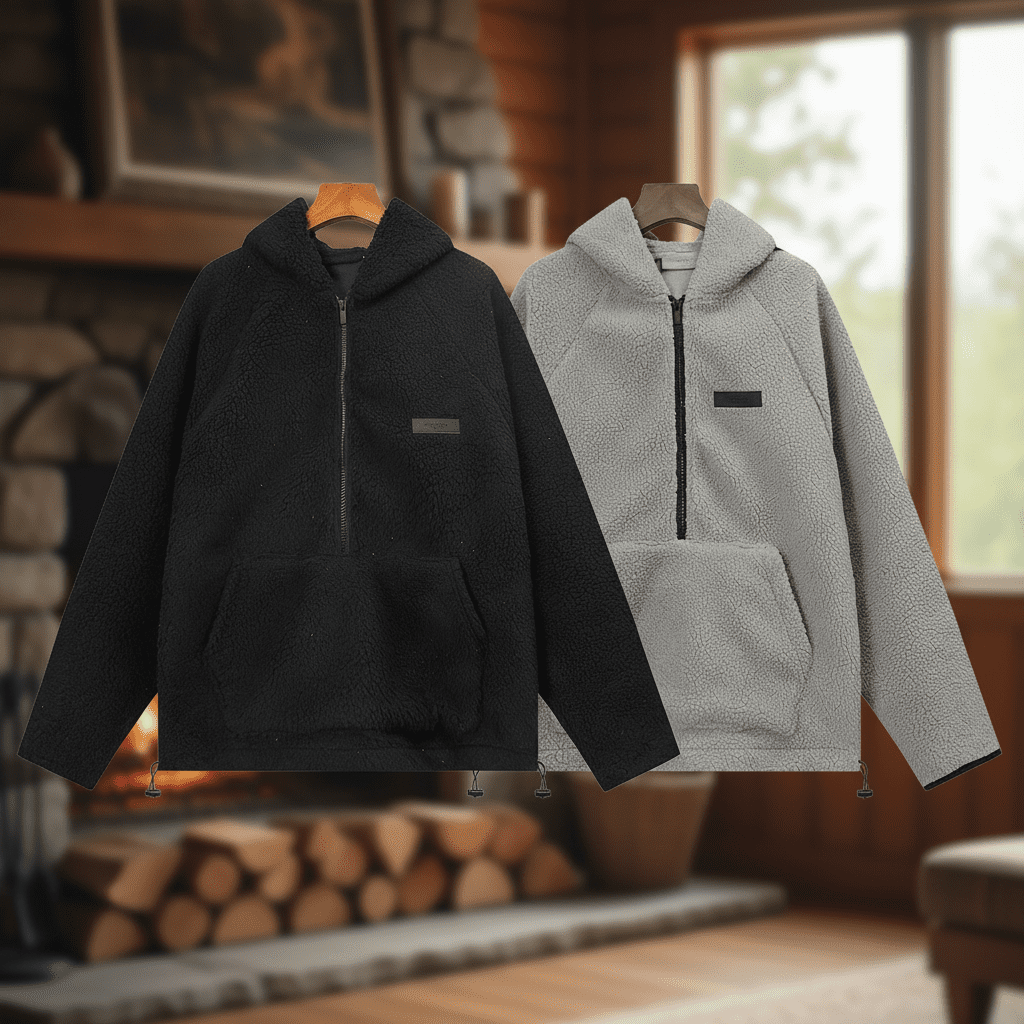Home / Hoodies/ Essentials Shearling Hoodie Unisex Luxury Fleece Relaxed Fit Black/Grey