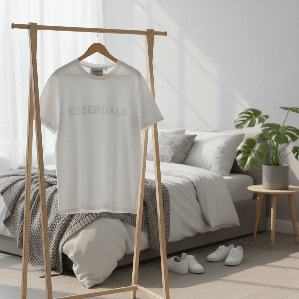 Essentials Basic White T-Shirt, crafted from premium cotton for comfort and breathability, features embossed logo on chest, unisex streetwear design perfect for daily casual outfits.