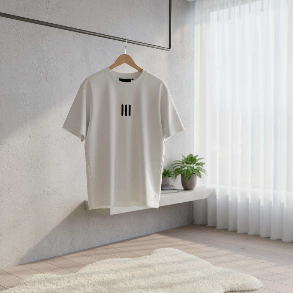 Essentials White Cotton T-Shirt, soft and breathable fabric with black triple stripe logo, minimalist streetwear unisex design perfect for daily casual or commute style.