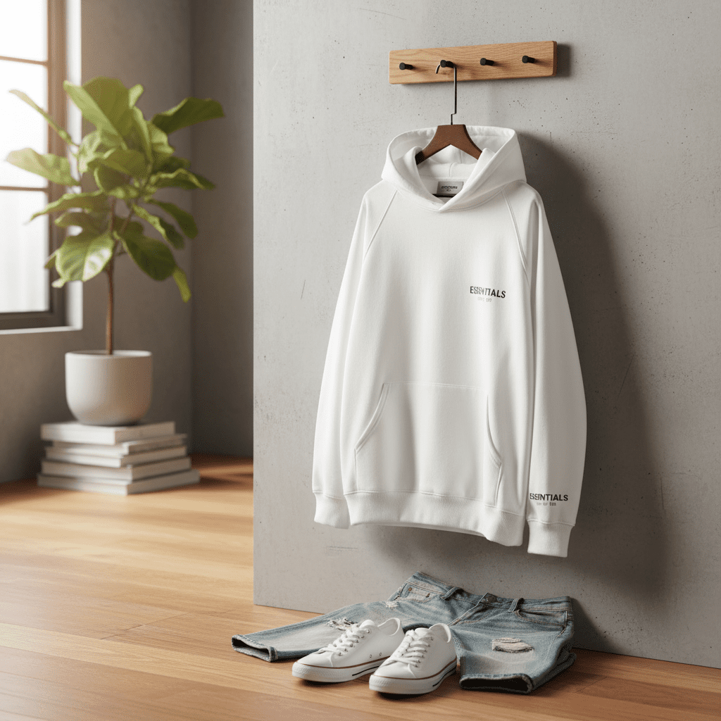 Essentials White Pullover Hoodie for Men Women