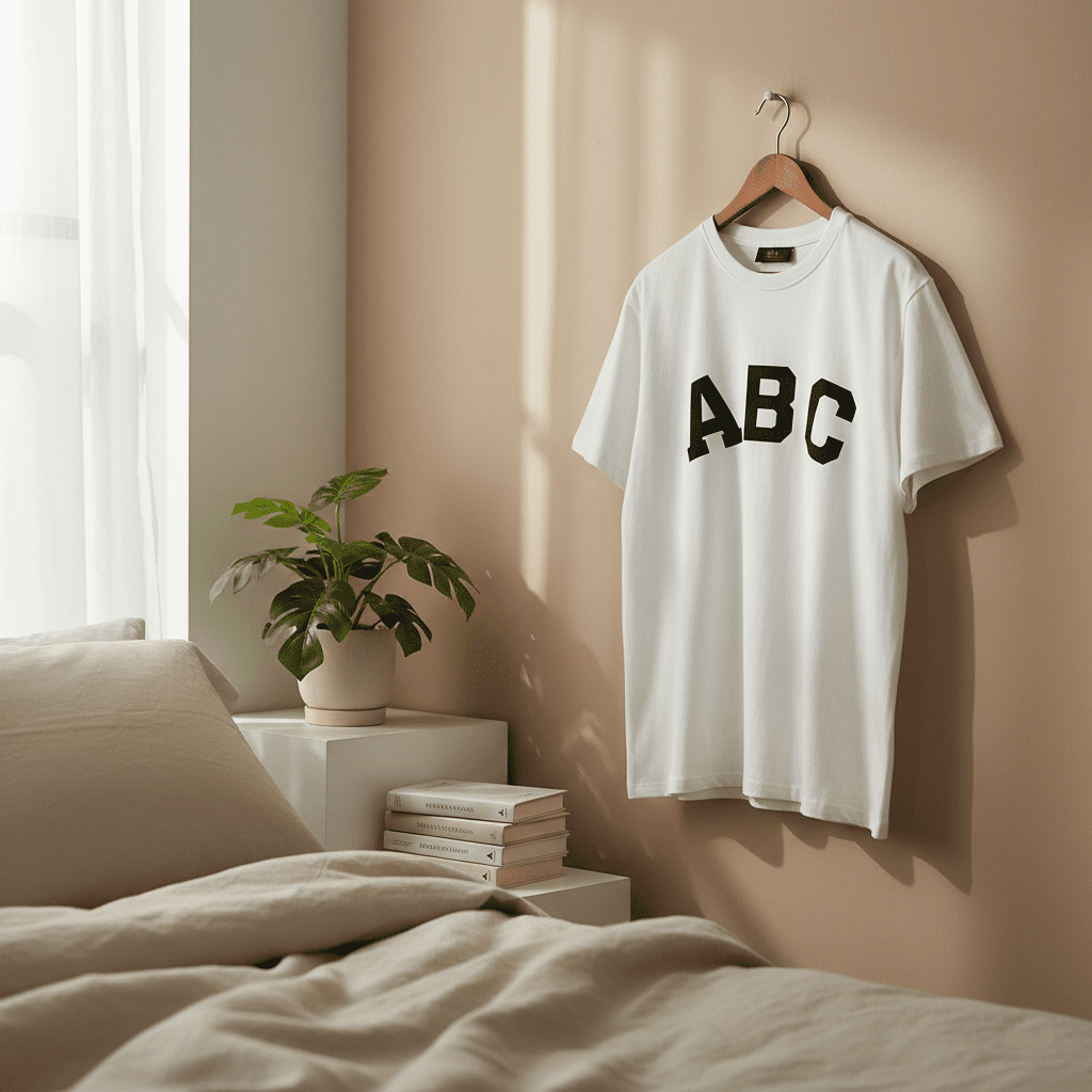 Fear of God (FOG) white cotton T-shirt with bold black ABC print, unisex streetwear design, breathable and soft fabric, ideal for daily casual outfits and effortless urban style.