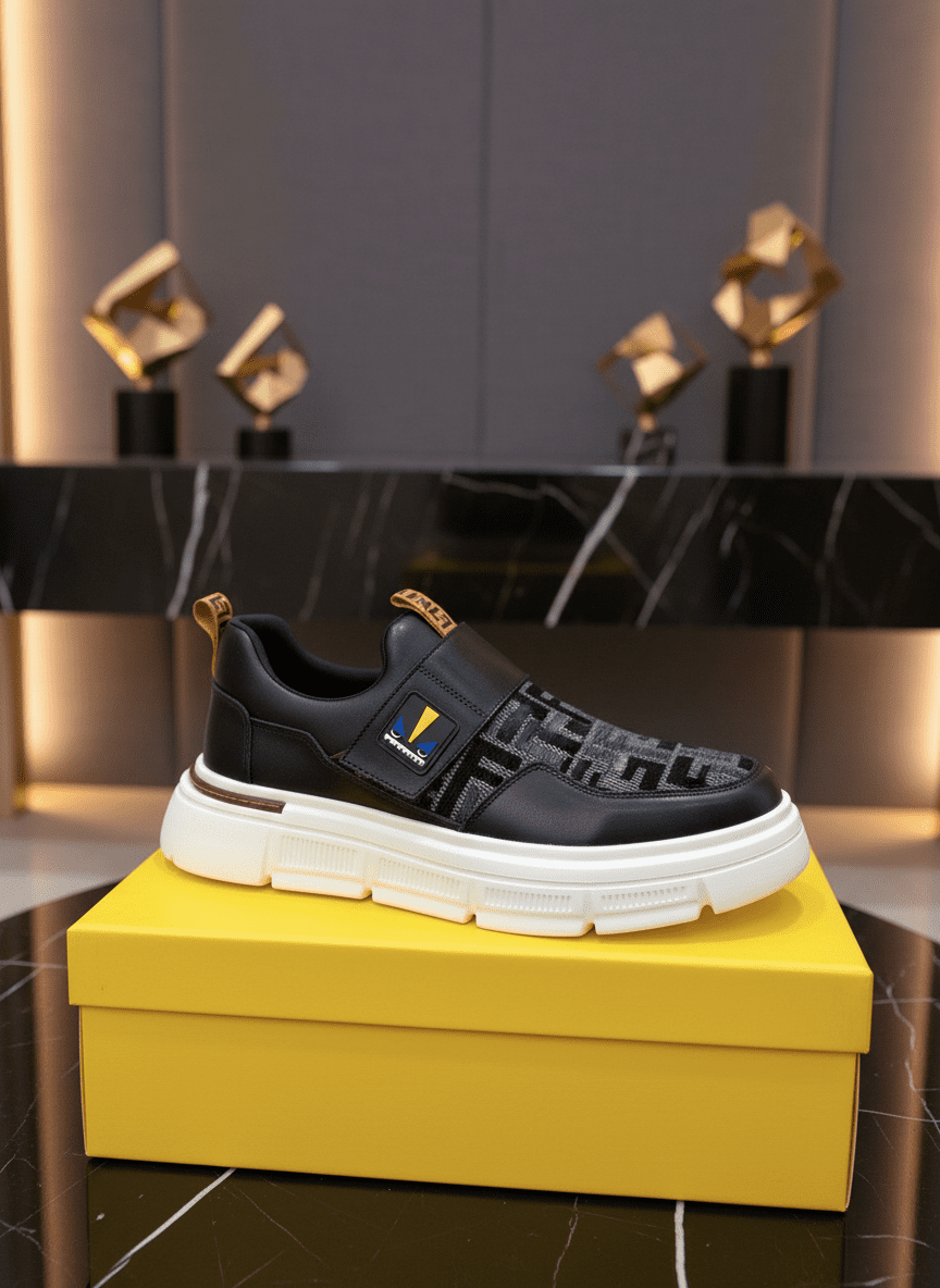 Fendi Luxury Napa Leather Sneakers Lightweight TPR Sole Charcoal Black