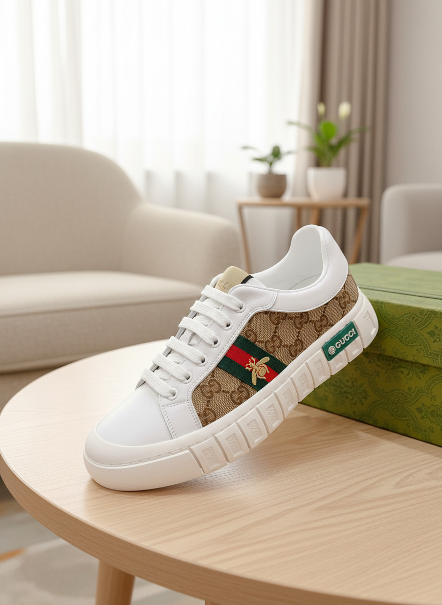 Gucci Men’s GG Supreme Bee Sneakers – Luxury designer casual shoes with signature web stripe, premium leather trim, and comfortable rubber sole. Perfect for streetwear and fashion lovers.