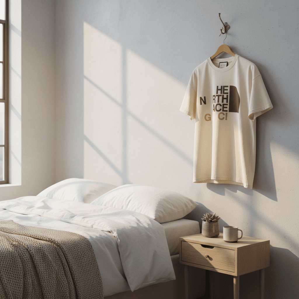 Gucci Co-Brand Collection Off-White T-Shirt, crafted from premium soft breathable cotton, features a stylish letter totem print design, unisex fit, perfect for daily casual fashion and brand identity.