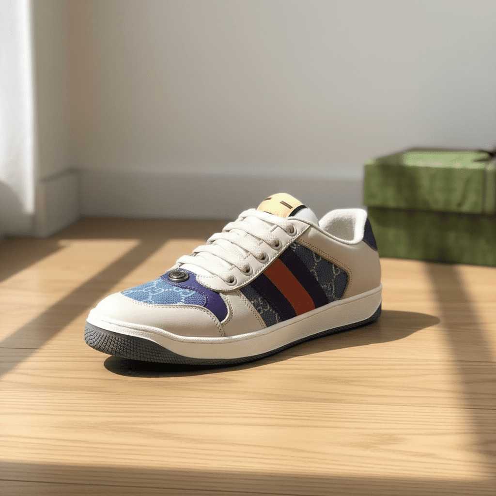 Gucci Casual Leather Sneakers Blue Red Stripes