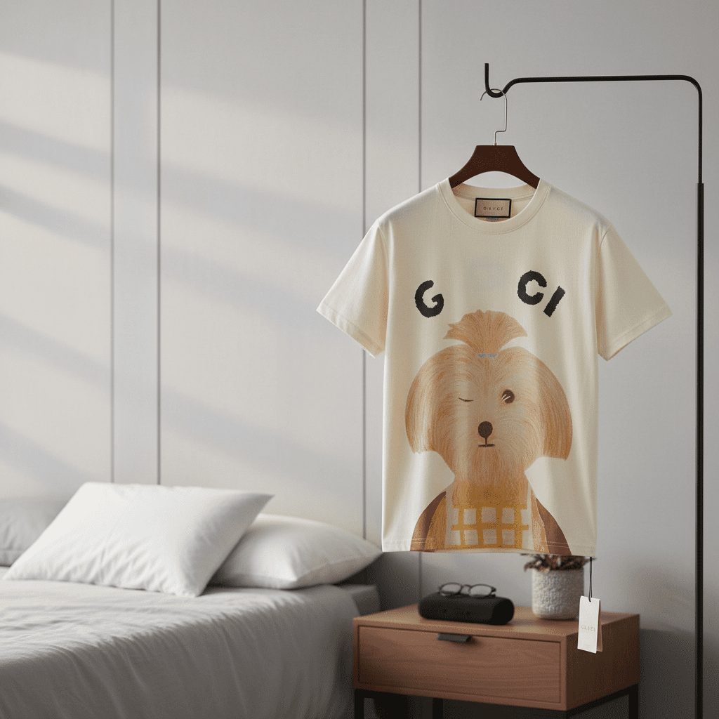 Home / T-Shirts/ Gucci Dog Print Casual Cotton T-Shirt Beige
