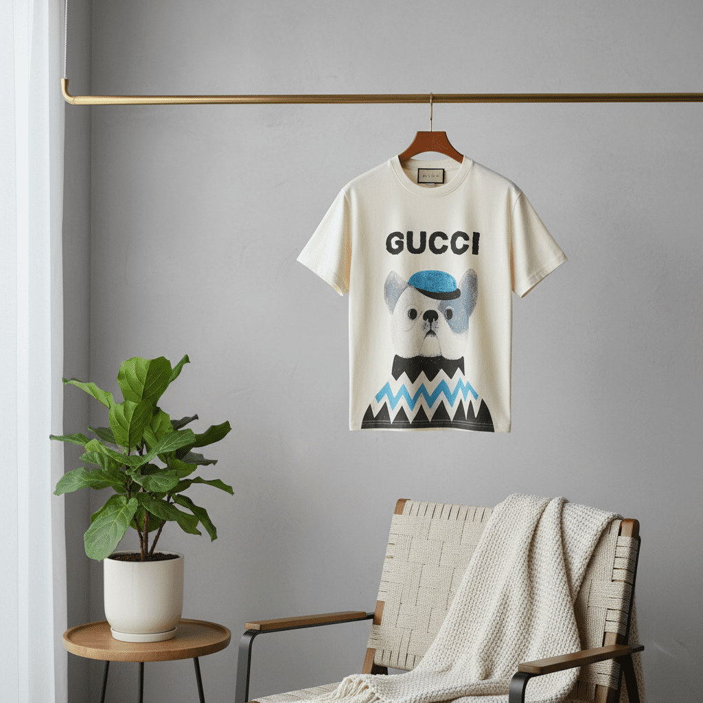 Gucci Dog Print Graphic Cotton T-Shirt Beige