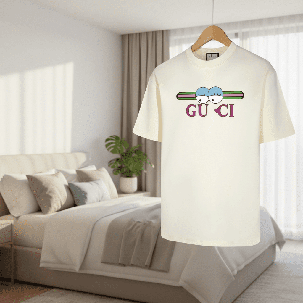 Gucci Off-White Cotton T-Shirt featuring cartoon eyes and logo graphic, stylish unisex design for comfortable everyday wear with a trendy casual vibe.