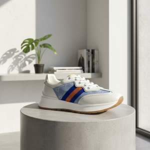 Gucci Men’s Sporty Casual Sneakers Blue Orange Stripes Shoes