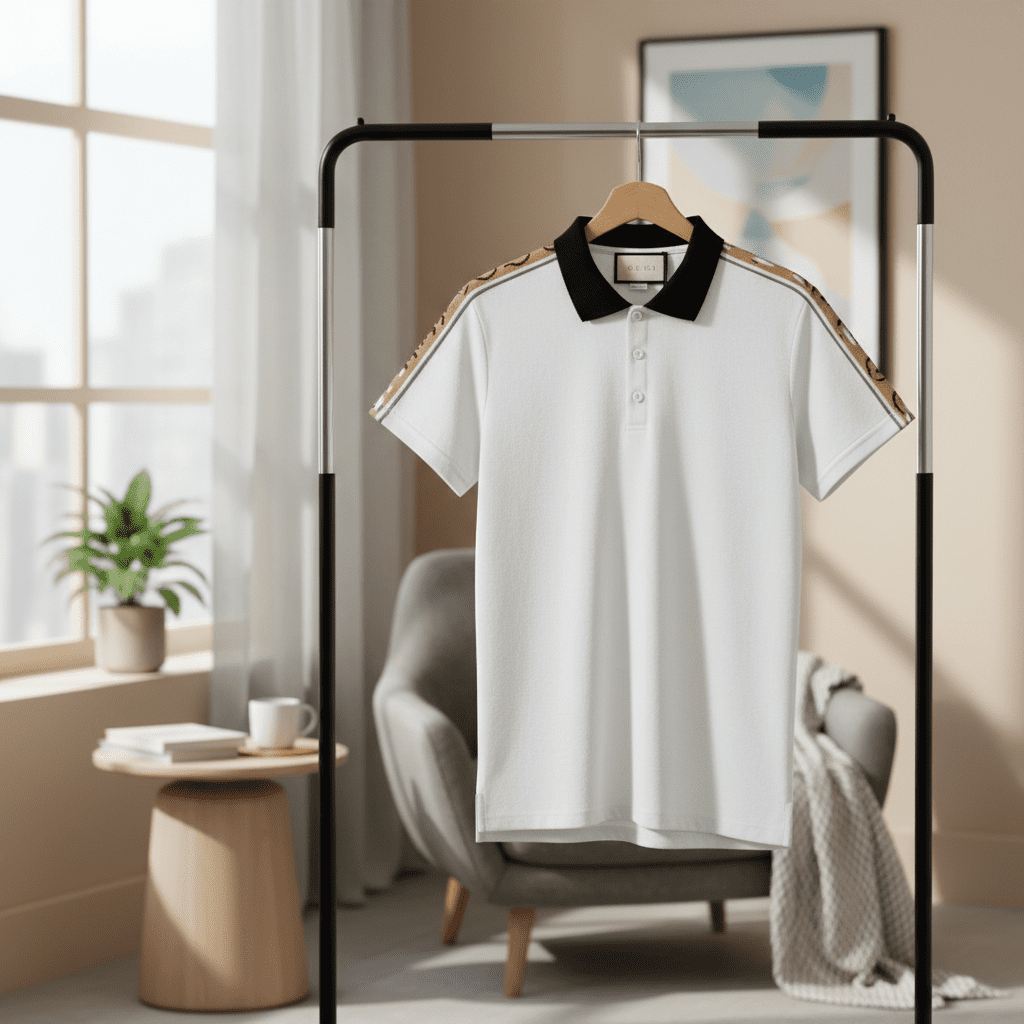 Gucci White Polo Shirt Black Collar Men’s Fashion
