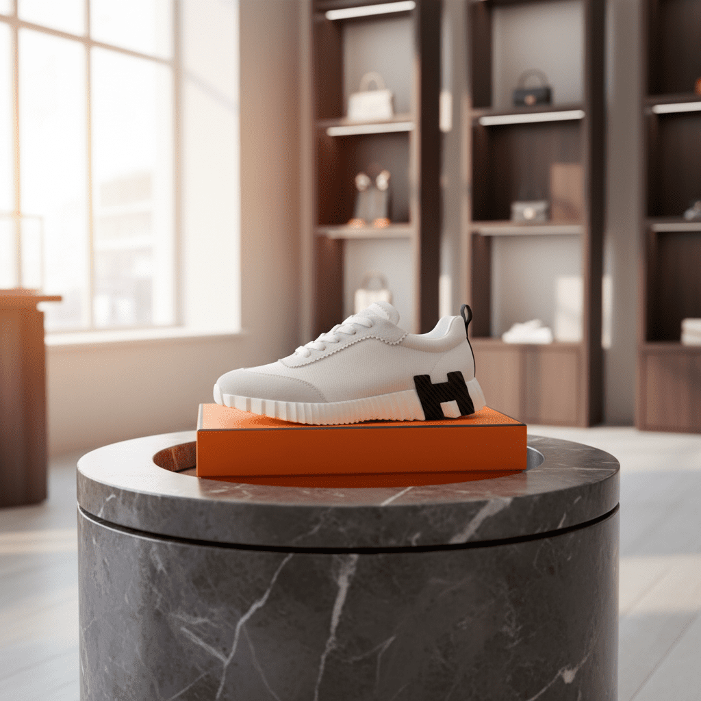 Hermes Bouncing Tech Canvas Suede Sneakers Cushioned Leather Black White