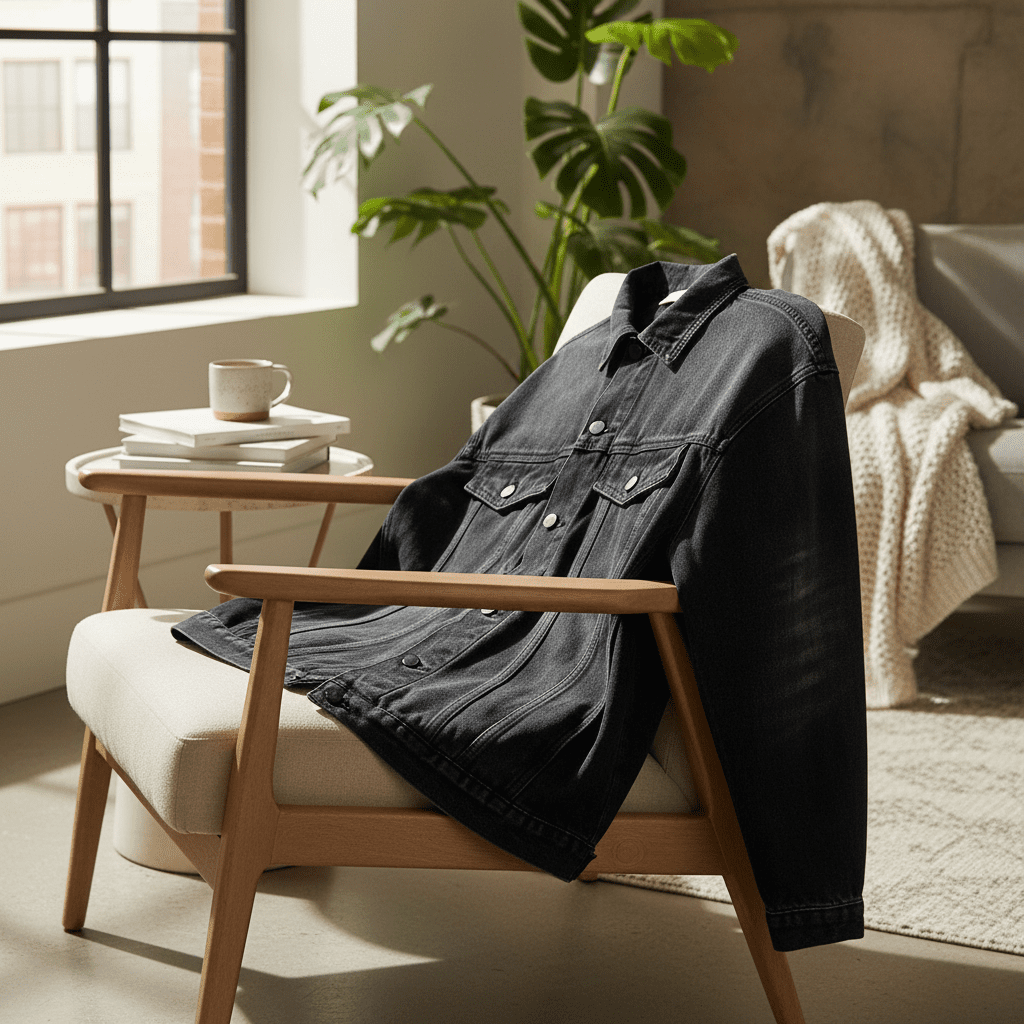 JacketsEssentials Black Denim Casual Jacket for Men
